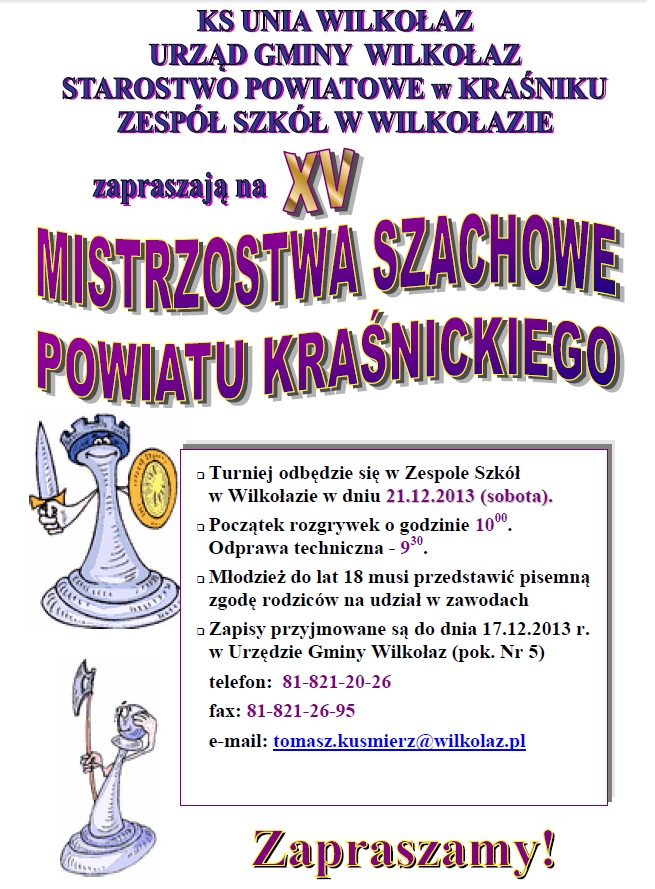 XV MISTRZOSTWA SZACHOWE POWIATU KRAŚNICKIEGO