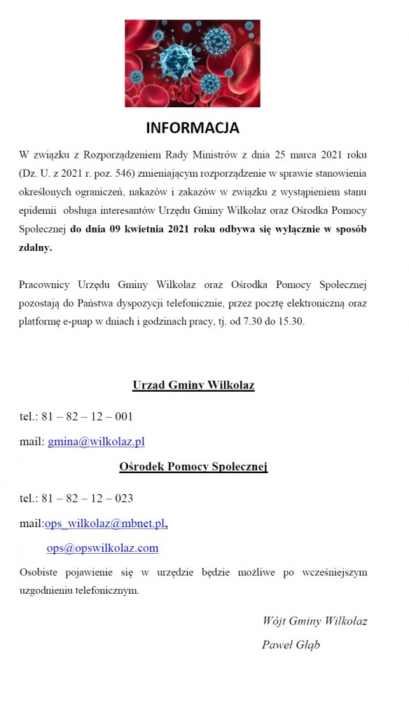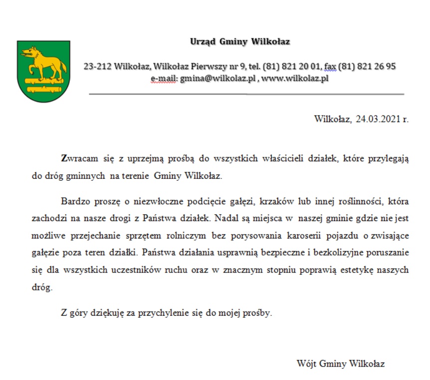 Zgodnie z art. 3 ust. 2 pkt 9 lit. f ustawy z dnia 13 września 1996 r. o utrzymaniu czystości i porządku w gminach (Dz. U.  z 2020 r. poz. 1439, z późn. zm.)Wójt Gminy Wilkołaz zamieszcza informacje dotyczące adresów punktów zbierania odpadów folii, sznurka oraz opon, powstających w gospodarstwach rolnych lub zakładów przetwarzania takich odpadów, jeżeli na obszarze gminy są położone gospodarstwa rolne.