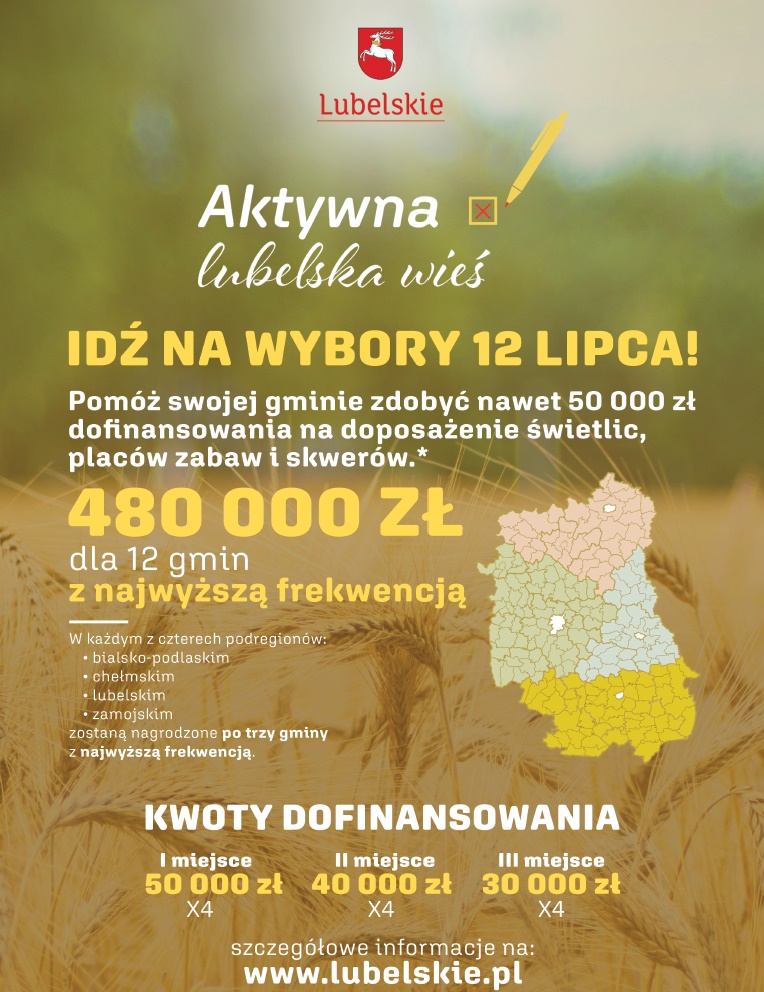 Urząd Marszałkowski Województwa Lubelskiego organizuje konkurs pod nazwą: ,,Rolnik z Lubelskiego 2020'', który stwarza okazję do promocji oraz wyróżnienia najlepszych rolników w czterech kategoriach konkursowych: produkcja zwierzęca, produkcja roślinna, ogrodnictwo, sadownictwo