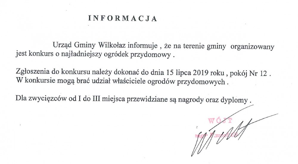 Ze względu na zbyt małą liczbę drużyn zgłoszonych do rozgrywek Turniej Piłkarski o Puchar Wójta Gminy Wilkołaz planowany na dzień 07.07.2019r., w tym roku nie odbędzie się.