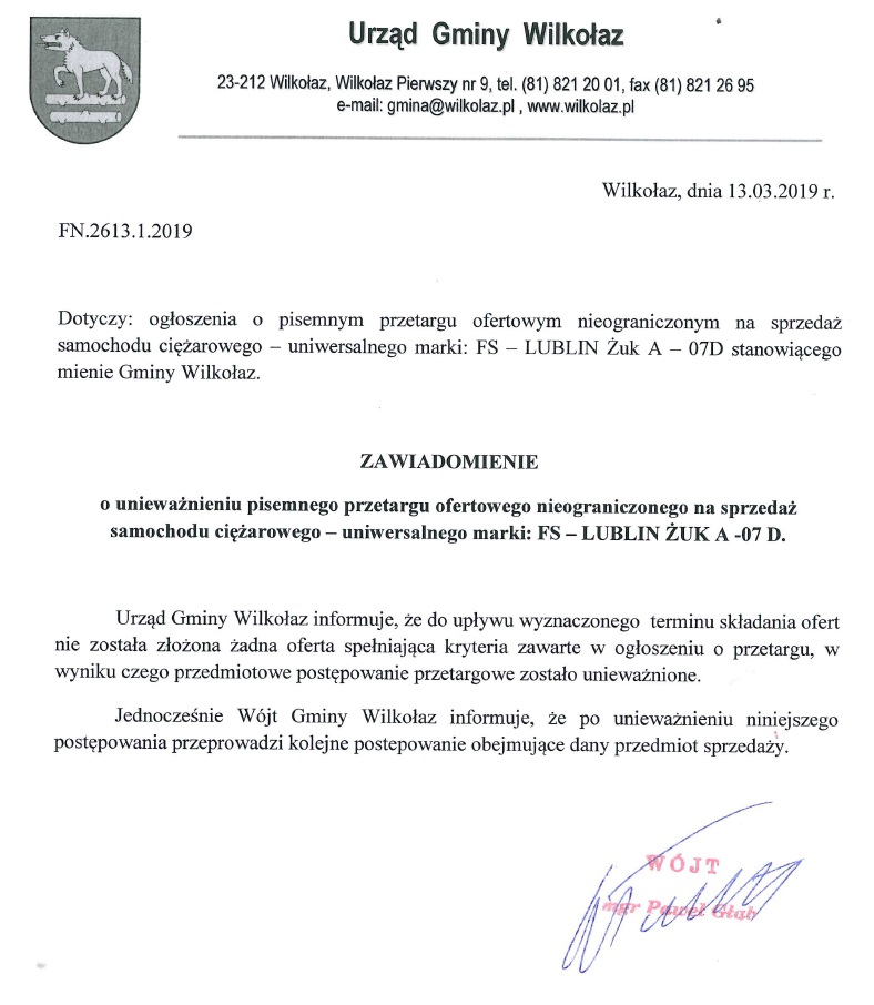 11 marca 2019 roku z rąk Wicemarszałek Sejmu RP Pani Beaty Mazurek oraz Wojewody Lubelskiego Pana Przemysława Czarnka Wójt Gminy Wilkołaz odebrał dwie promesy. Pierwsza w wysokości 490,0 tyś zł dotyczy odbudowy 920 metrów drogi gminnej nr 118053L, druga w wysokości 337,0 tys zł jest przeznaczona na utwardzenie dna wąwozu lessowego w ciągu drogi gminnej nr 118055L. Łączna kwota otrzymanego wsparcia to maksymalnie 827,0 tyś zł - nie więcej jednak niż 80,0 % całej wartości poszczególnych zadań po przetargu.