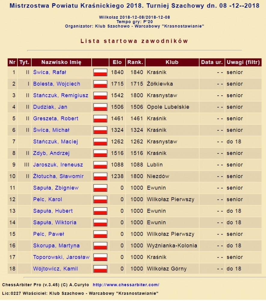 W turnieju wzięło udział 18 osób. Powiat kraśnicki reprezentowało w tym roku 12 osób.