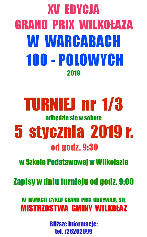 W dniu 08.12.2018r. w remizie OSP w Wilkołazie odbył się otwarty XX Turniej Szachowy o Mistrzostwo Powiatu Kraśnickiego. Oficjalnego otwarcia turnieju dokonał Wójt Gminy Wilkołaz Pan Paweł Głąb. Rozgrywki rozpoczęły się o godzinie 1000.