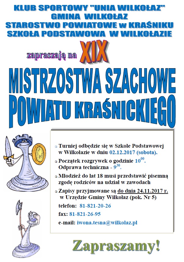 Wójt Gminy Wilkołaz zaprasza kapitanów drużyn, które zgłosiły się do rozgrywek w Wilkołaskiej Lidze Futsalu WLF na spotkanie, które odbędzie się w Urzędzie Gminy w dniu 21.11.2017 r. o godz. 17.00.