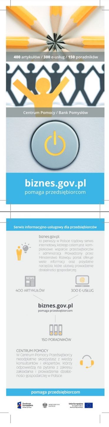 Biznes.gov.pl to serwis przeznaczony dla osób zamierzających i prowadzących działalność gospodarczą. Celem portalu jest pomoc w realizacji spraw związanych z zakładaniem i prowadzeniem działalności gospodarczej drogą elektroniczną w sposób łatwy i intuicyjny oraz uproszczenie formalności niezbędnych do założenia i prowadzenia firmy.