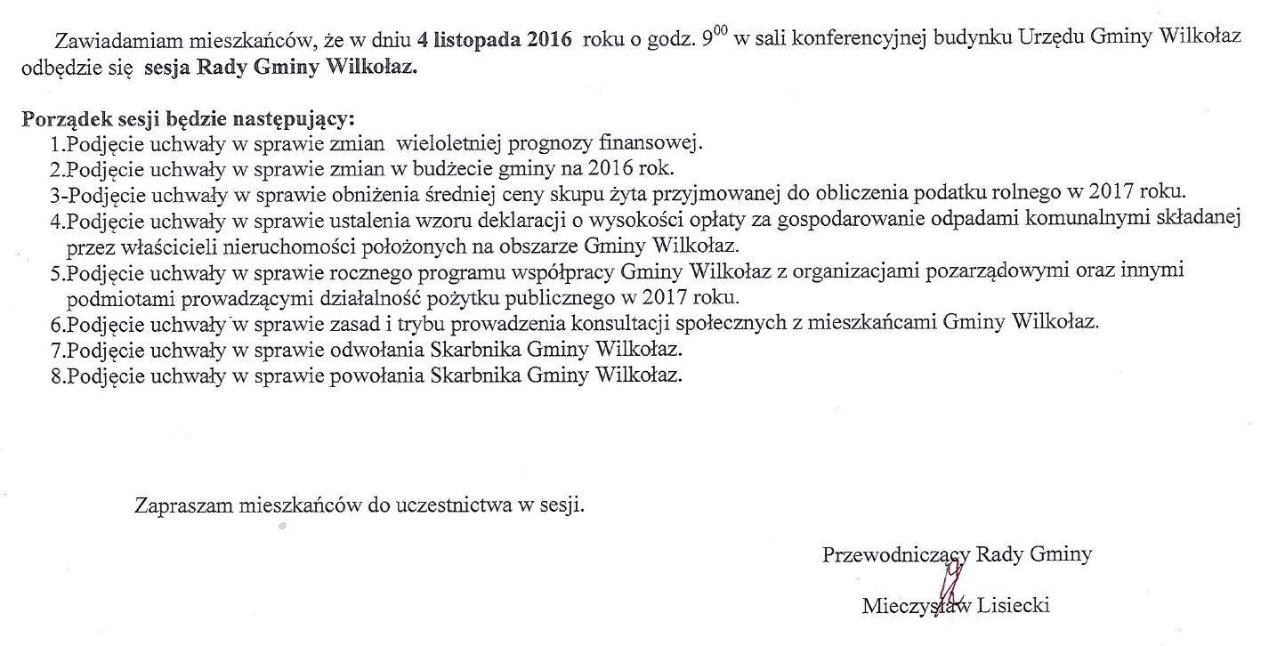 Drodzy Mieszkańcy Gminy Wilkołaz,