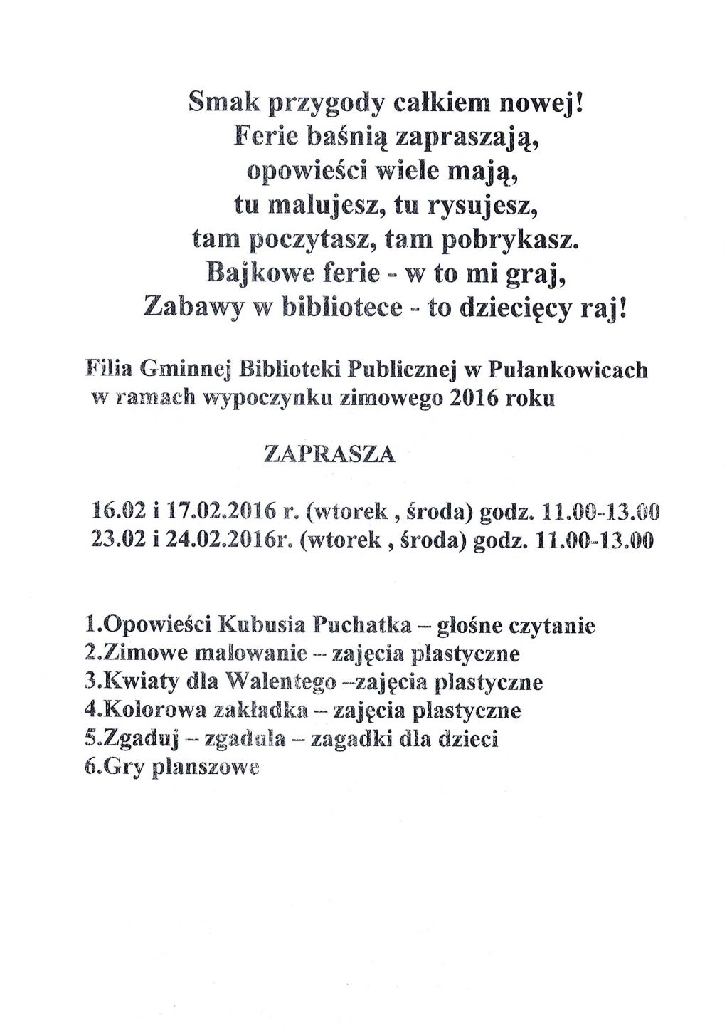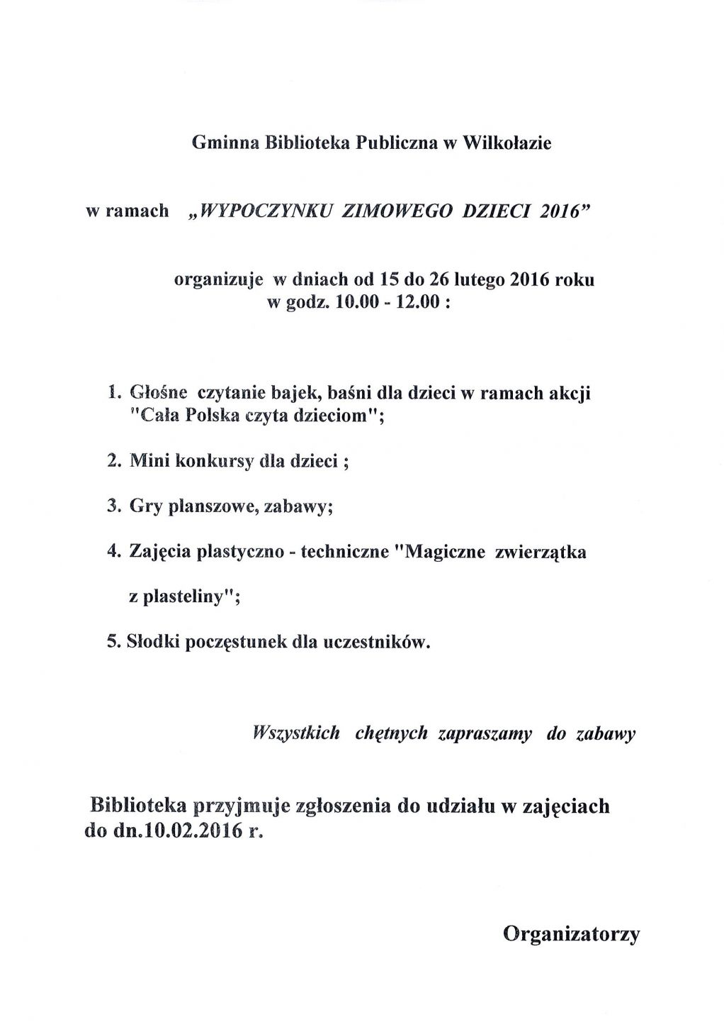Wypoczynek zimowy dzieci 2016