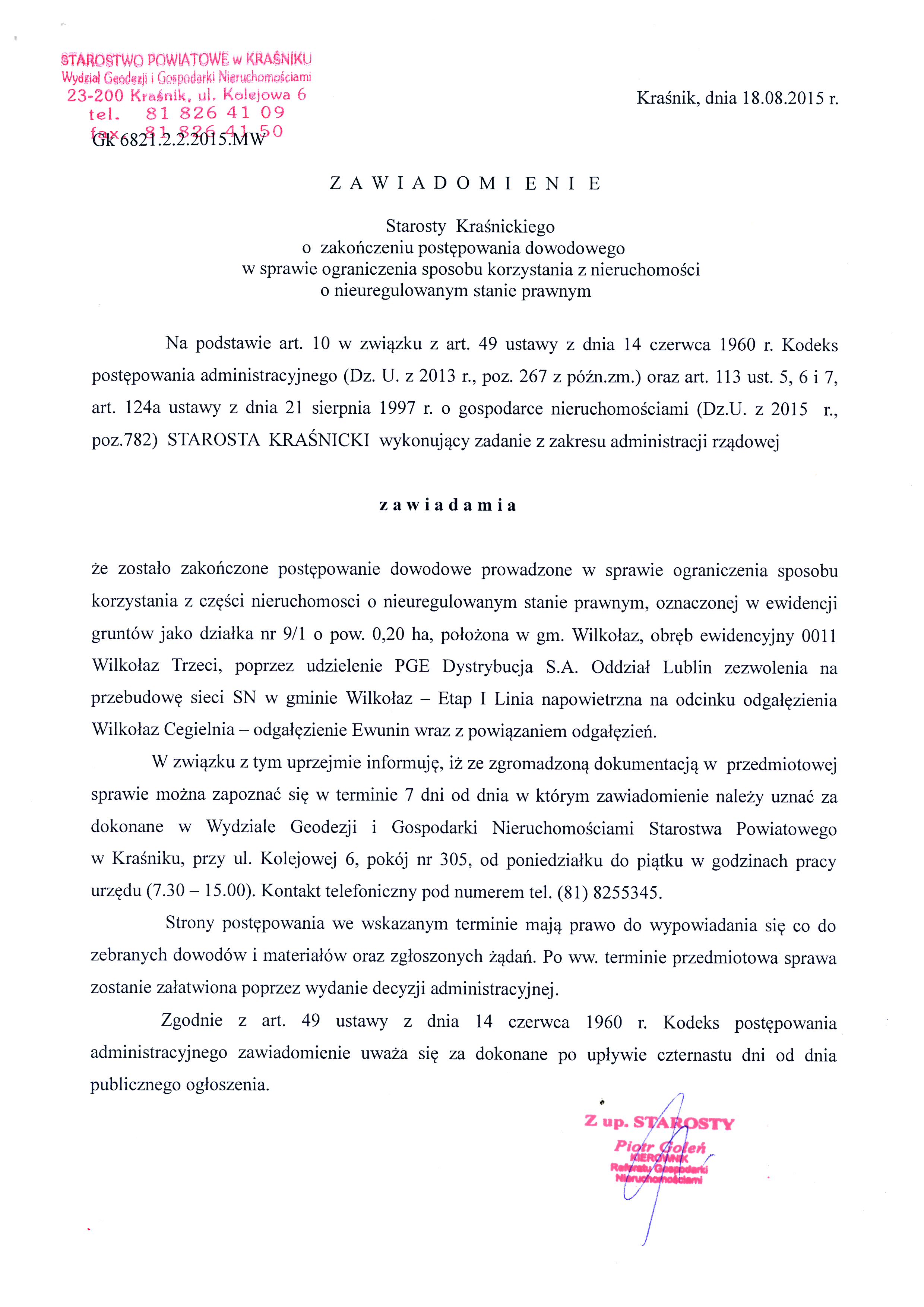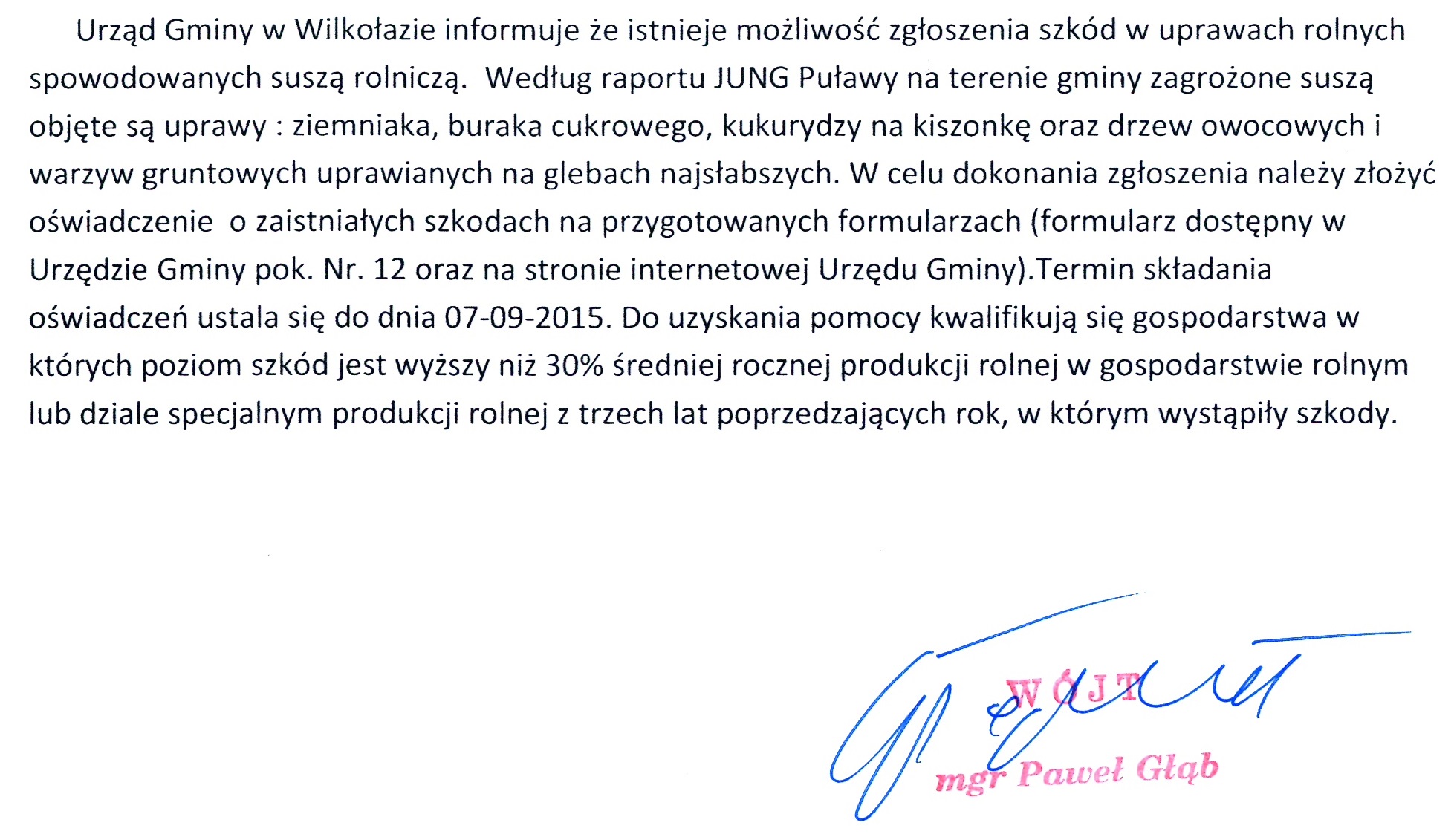 Osoby zainteresowane prosimy o kontakt z Urzędem Gminy Wilkołaz