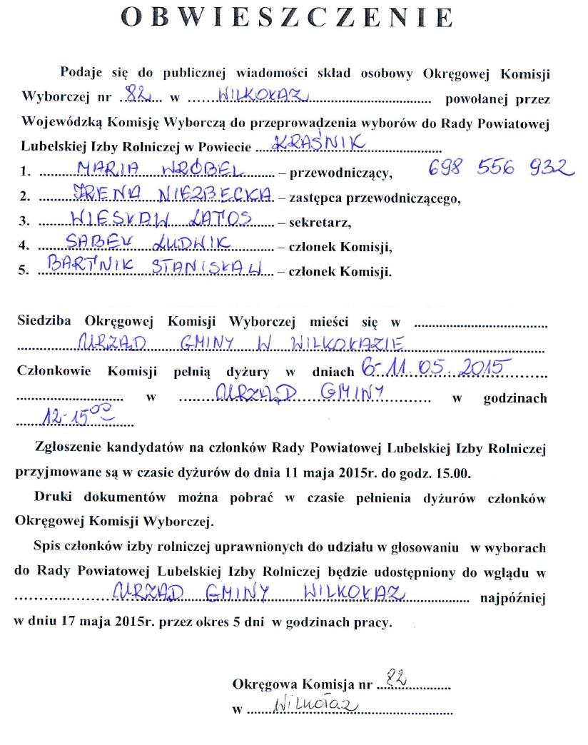 Przewodniczący                        Wójt Gminy Wilkołaz