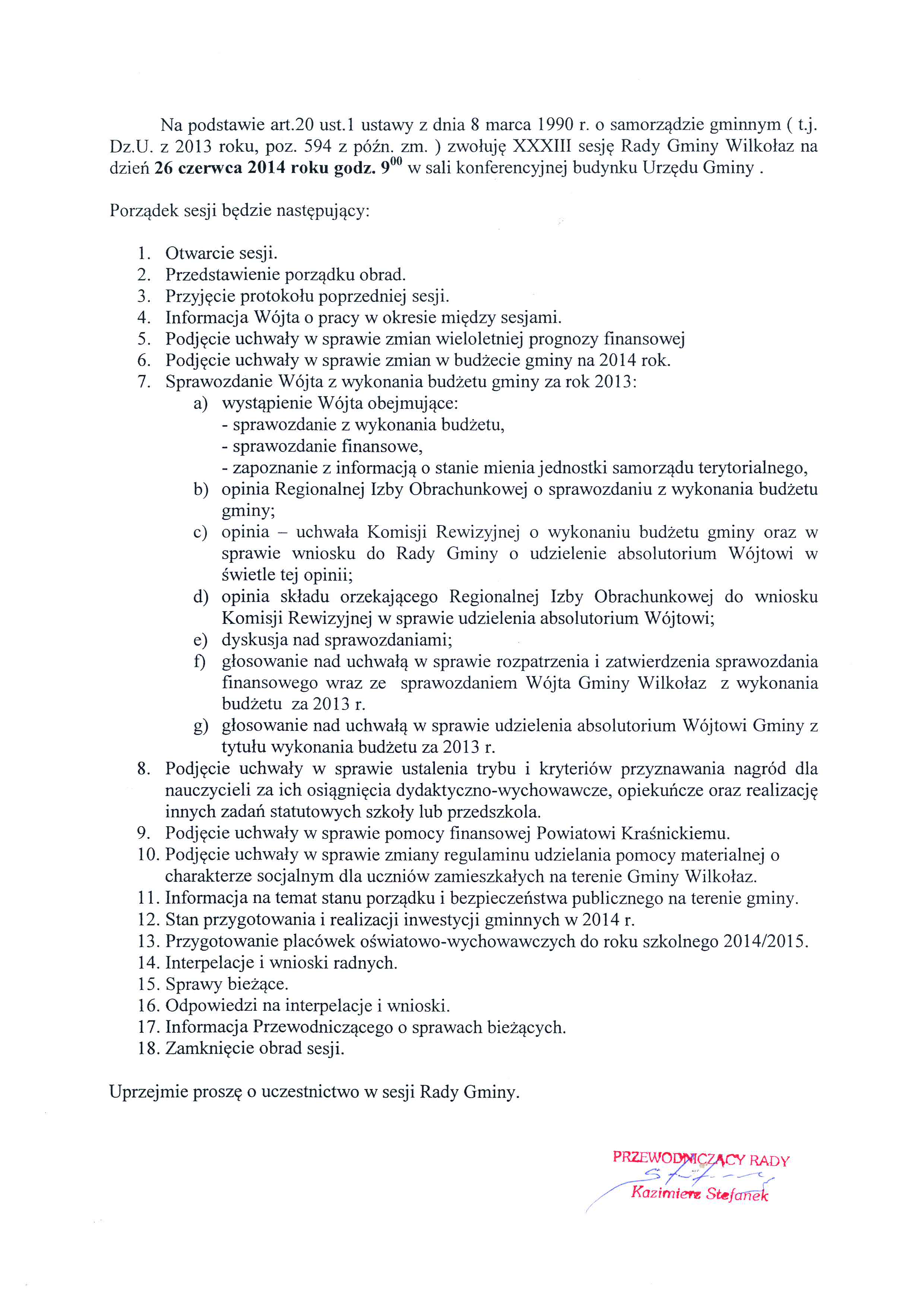 do 18 czerwca 2014 roku  w Urzędzie Gminy Wilkołaz  - pokój nr 12  u Pani  S. Garbacz