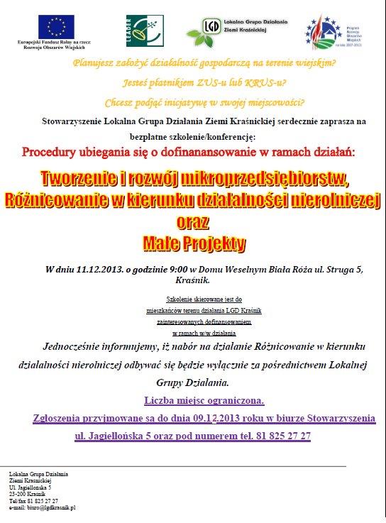 ROZWOJU REGIONU 26 listopada 2013 roku Kraśnik - TRANSMISJA NA ŻYWO 11:00 - 15:00. Zapraszamy.