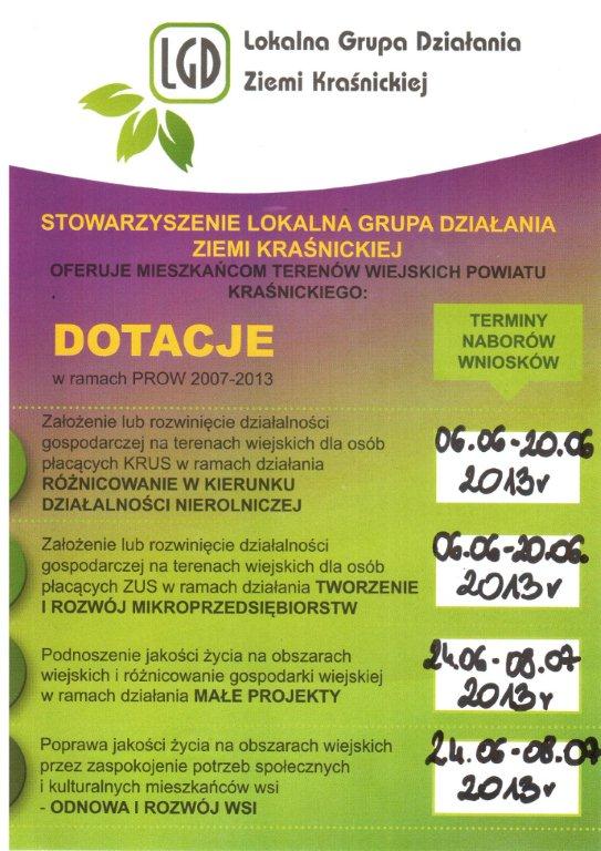 "Wyposażenie świetlicy wiejskiej w Wilkołazie Trzecim" współfinansowanego ze środków Unii Europejskiej w ramach działania 413 "Wdrażanie lokalnych strategii rozwoju" objętego PROW na lata 2007-2013.