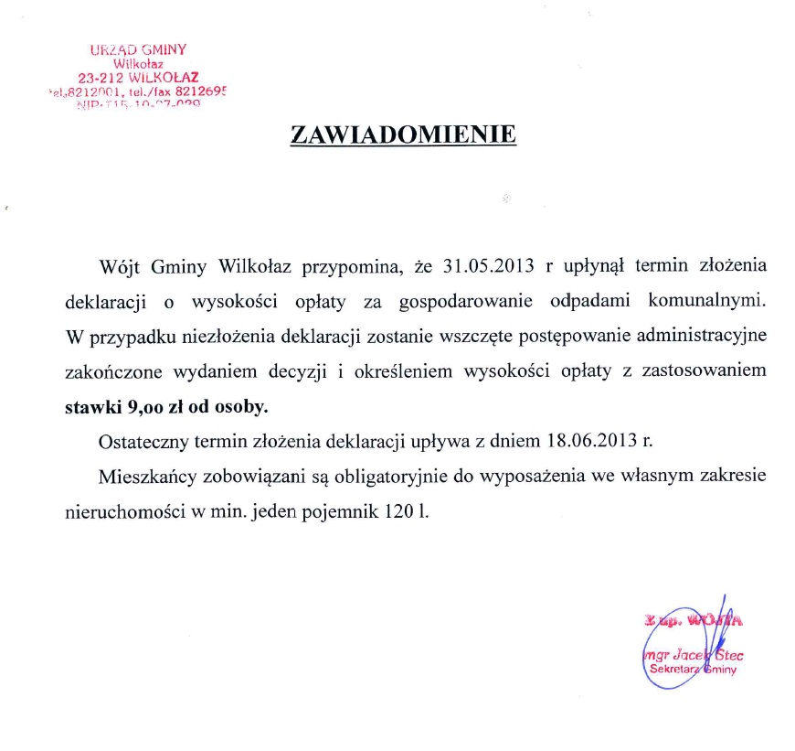 Gmina Wilkołaz zaprasza do złożenia ofert na:
