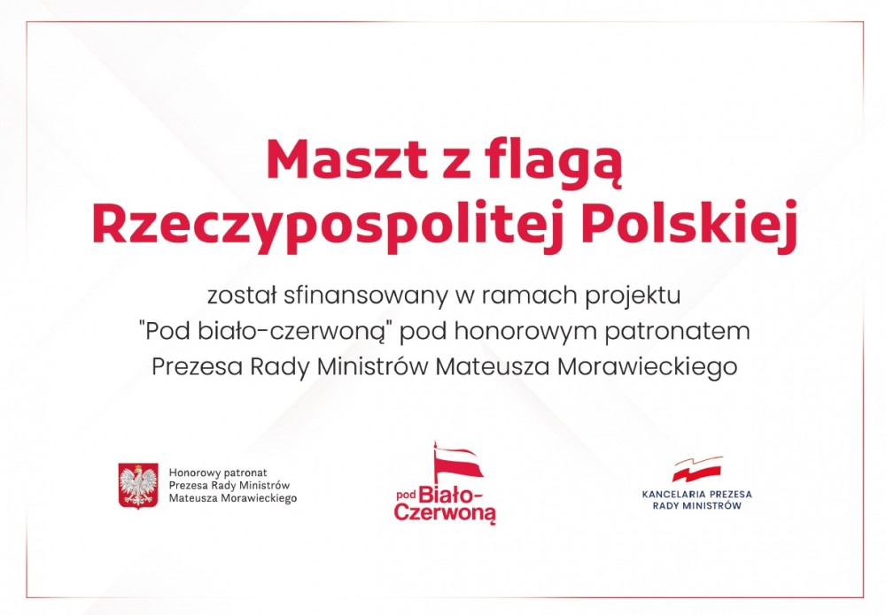 Projekt „Pod biało-czerwoną” zakłada sfinansowanie przez Rząd Rzeczypospolitej Polskiej zakupu masztów i flag w każdej gminie w Polsce dla uczczenia 100 Rocznicy Bitwy Warszawskiej pod patronatem Premiera Mateusza Morawieckiego. Warunkiem uzyskania środków na inwestycję było poparcie mieszkańców, którzy oddali głos w internetowej ankiecie na swoją gminę. Głosy były zbierane od 25 sierpnia do 11 listopada 2020 roku. Ogłoszenie zakwalifikowanych gmin zostało opublikowane 29 listopada 2020 roku. Umowę w sprawie udzielenia dotacji celowej pochodzącej z rezerwy ogólnej budżetu państwa na sfinansowanie wydatków inwestycyjnych dotyczących zakupu masztu i flagi oraz ich instalacji w ramach projektu „Pod biało-czerwoną” podpisano 27 lipca 2022 r. Kwota dotacji 8 000,00 zł.