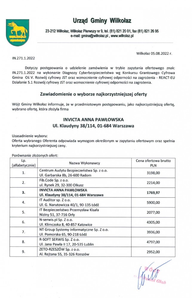 Osoby zainteresowane prosimy o kontakt z Urzędem Gminy Wilkołaz