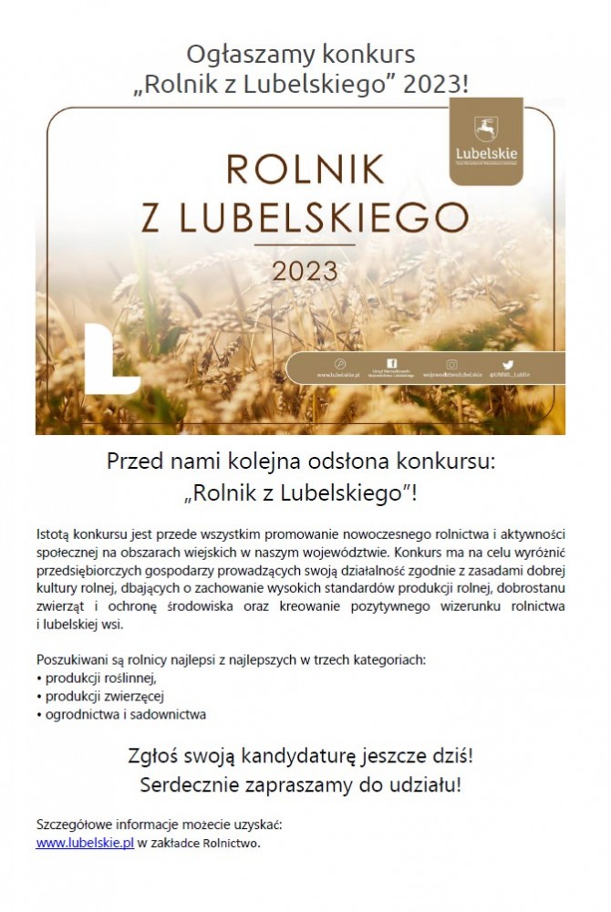Do tytułu „Nasz Sołtys” można zgłaszać sołtysów z województwa lubelskiego, którzy aktualnie pełnią funkcję i pełnili ją przez cały poprzedni, 2022 rok.