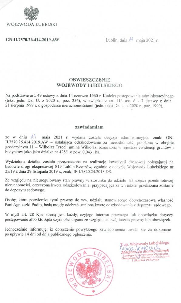 Zainteresowane osoby prosimy o kontakt telefoniczny pod nr tel. 81/82 12 001 lub 81/82 12 047