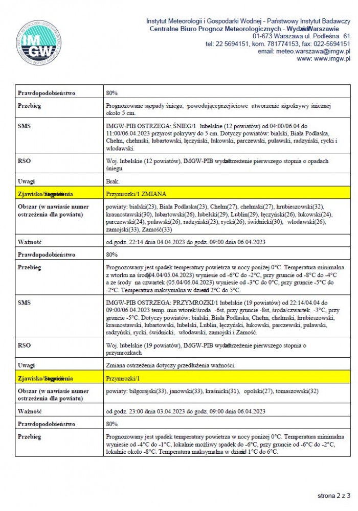 Ostrzeżenie meteorologiczne zbiorczo nr 57