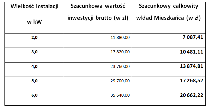 W odróżnieniu do poprzedniego dofinansowania jego wartość będzie na poziomie 40 %-50%, a więc zainteresowani mieszkańcy pokrywają koszty w wysokości 50-60% kosztu całkowitego, tj. ok. 8 000-9 000 zł przy koszcie całkowitym instalacji kotła na biomasę ok. 16 000 zł.